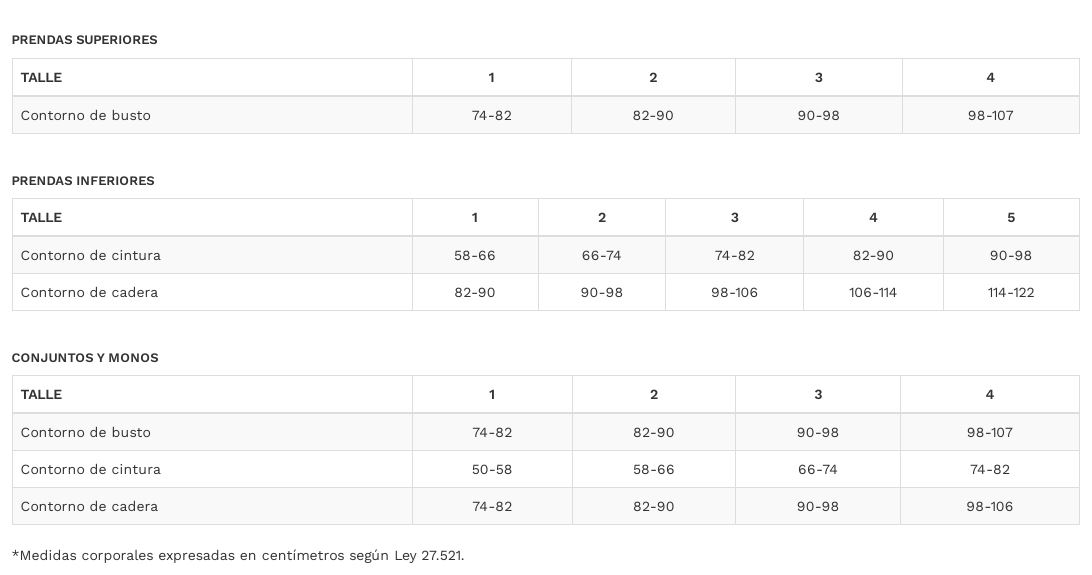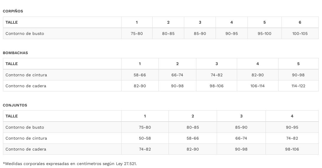 TABLA DE TALLES TUTTA LA FRUTTA (ROPA INTERIOR - PIJAMAS - TRAJES DE BAÑO)