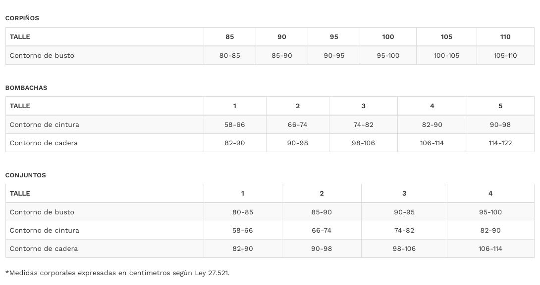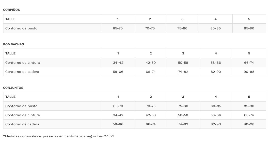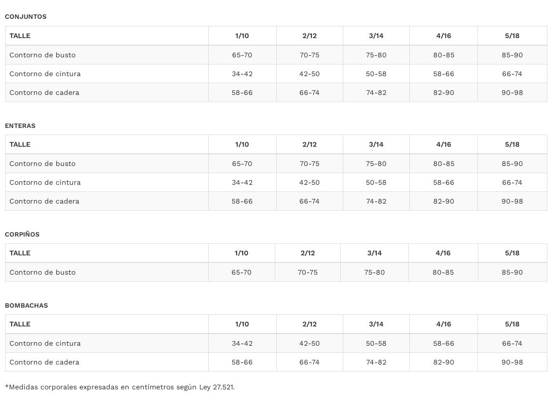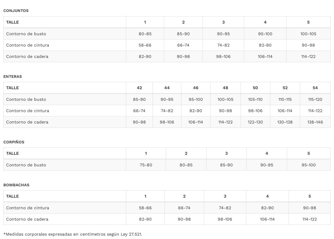 TABLA DE TALLES SWEET VICTORIAN (CORPIÑOS - BOMBACHAS - PIJAMAS - MALLAS)