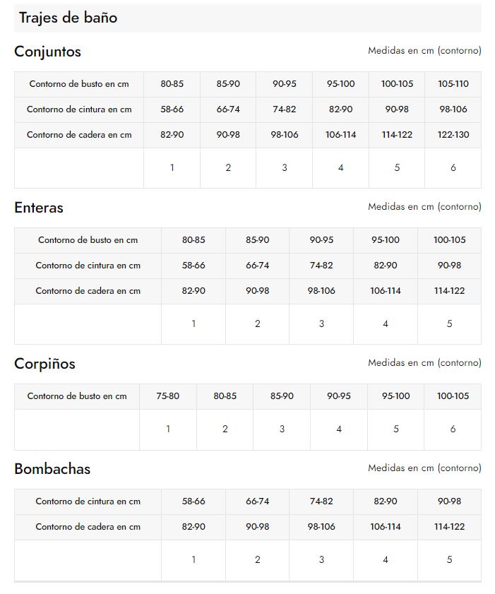TABLA DE TALLES SWEET LADY (ROPA INTERIOR - PIJAMAS - TRAJES DE BAÑO)